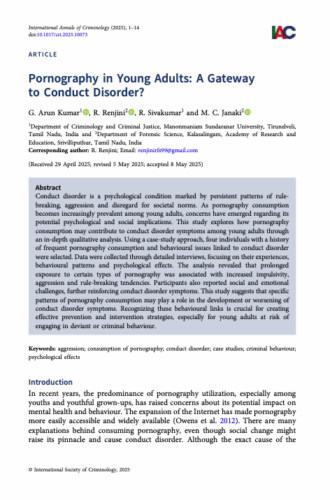 Arun Kumar, G., Renjini, R., Sivakumar, R., & Janaki, M. C. (2025). Pornography in Young Adults: A Gateway to Conduct Disorder? International Annals of Criminology, 1–14. https//doi.org/10.1017/cri.2025.10073