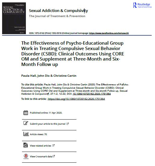 Full Article Title: The Effectiveness of Psycho-Educational Group Work in Treating Compulsive Sexual Behavior Disorder (CSBD): Clinical Outcomes Using CORE OM and Supplement at Three-Month and Six- Month Follow up