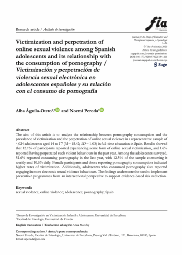 Águila-Otero, A., & Pereda, N. (2025). Victimization and perpetration of online sexual violence among Spanish adolescents and its relationship with the consumption of pornography. Journal for the Study of Education and Development, 48(3), 575-600. https://doi.org/10.1177/02103702251341261